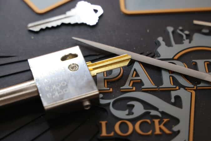 This requires time, experience, and finesse; those who are very good at it can make some good time, but it’s a slow and deliberate process for the rest of us. The notable benefit if you’re successful is that you’ll end up with a working key as a reward for all your hard work. One of our instructors, for example, impressioned a key for a gear shift lock on a vintage Porsche for which the original key had been lost long ago.