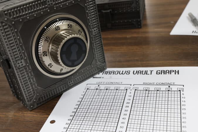Sparrows’s Challenge Vault features a configurable safe combination lock that you can use to practice safe cracking, with several levers to switch between two- and three-number combos to make for progressive practice sessions.