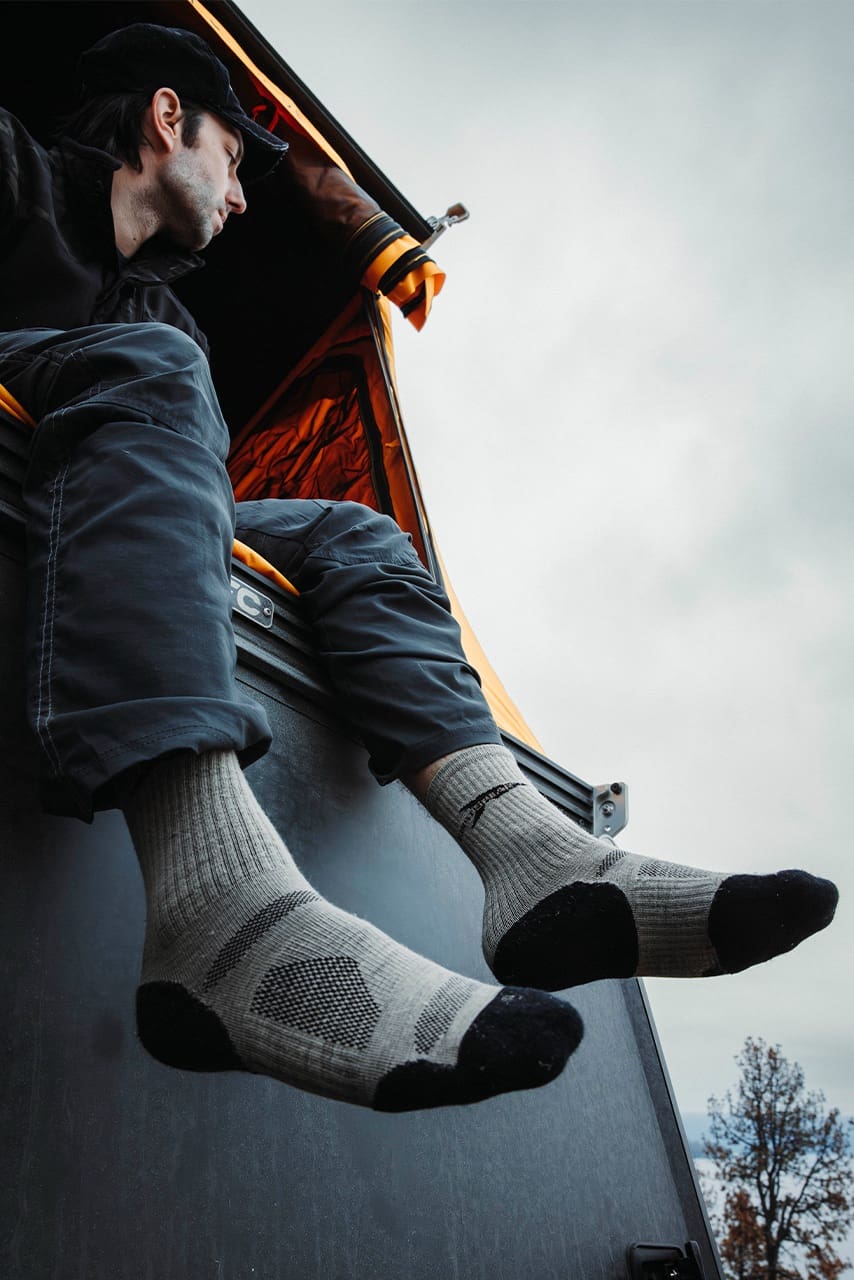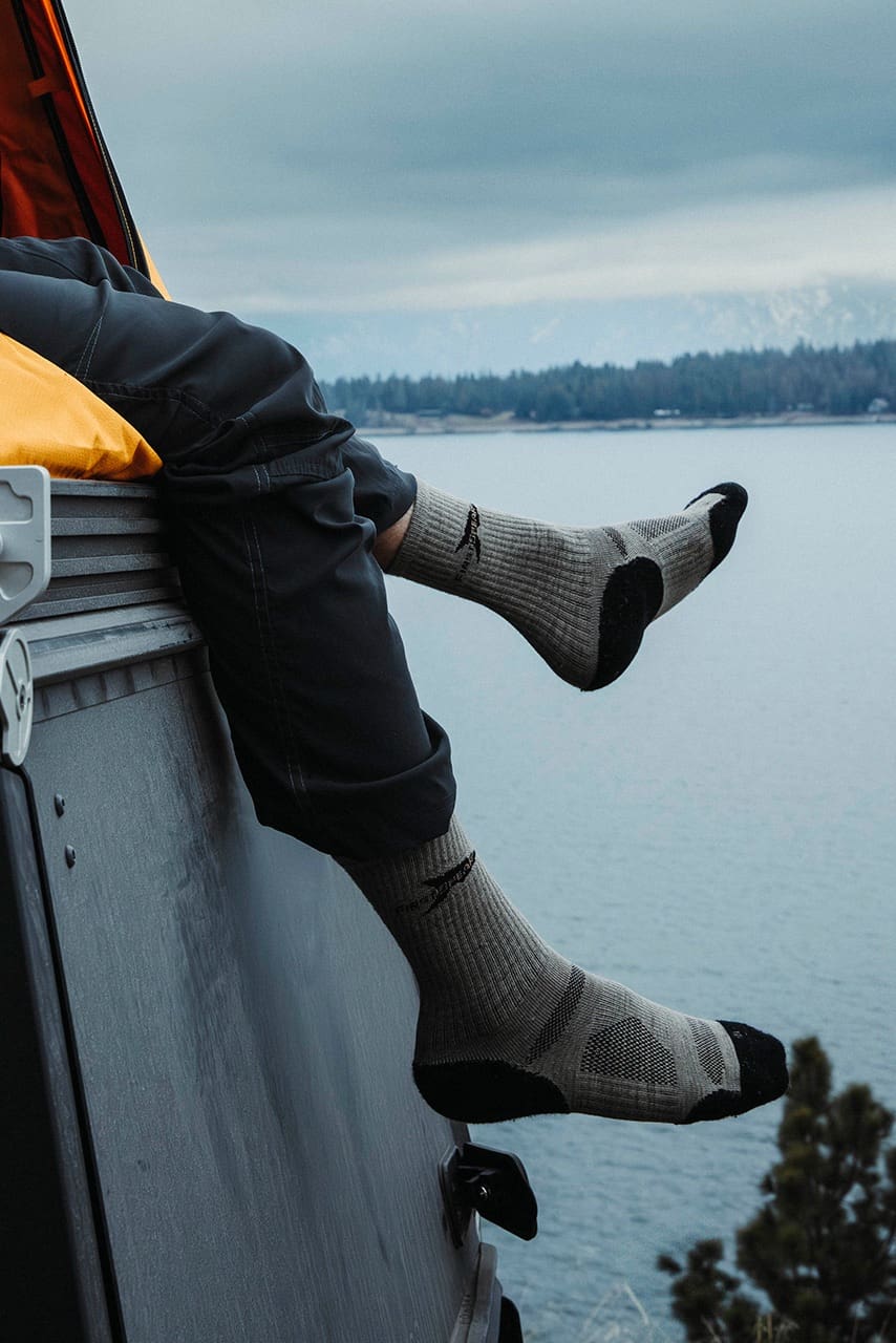 An extra-light top panel improves heat dissipation, preventing hot spots during sustained activity. The reinforced cuff is built to stay locked in place, eliminating sagging or bunching inside footwear.