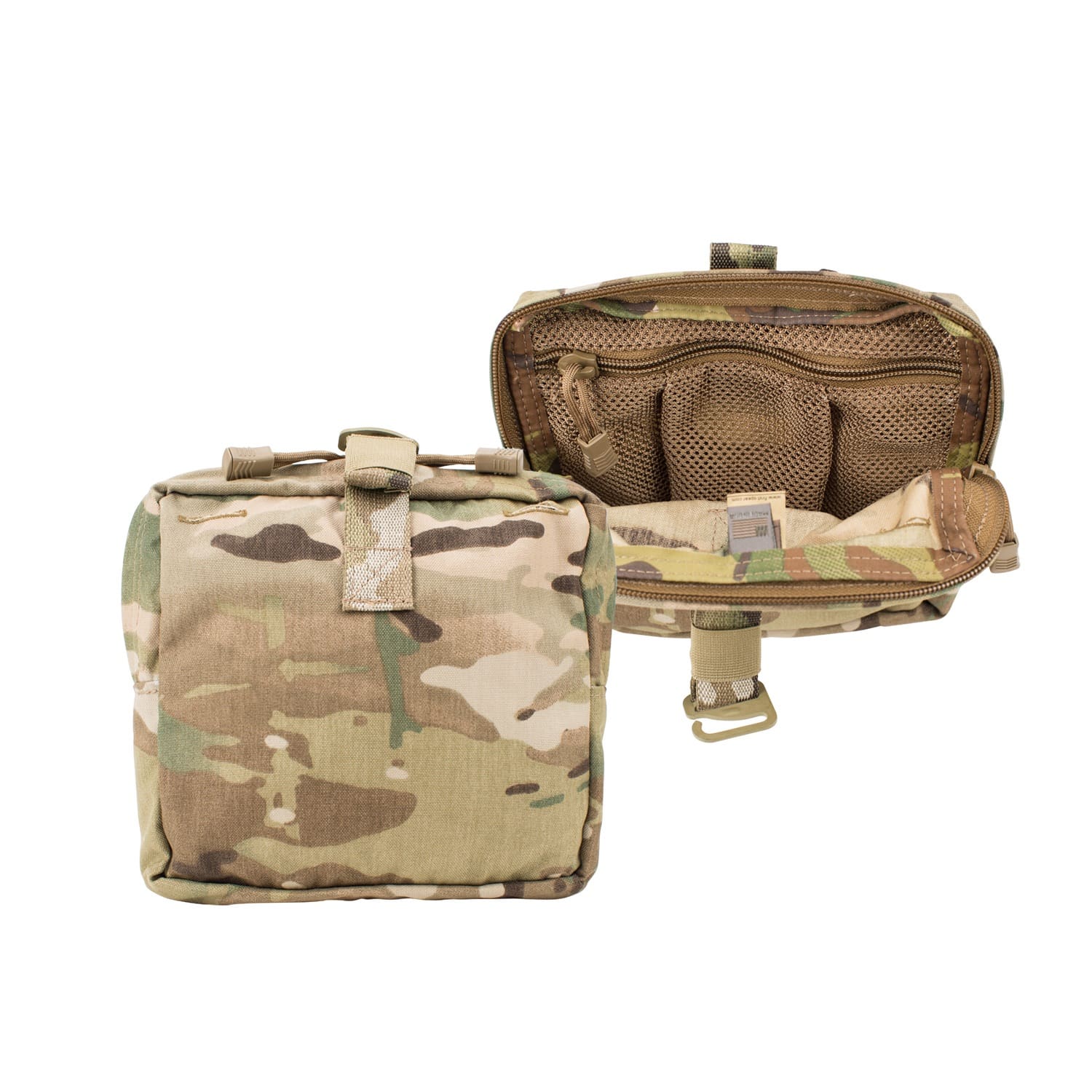 The GENERAL PURPOSE POCKET, MEDIUM increases carrying capacity while maintaining a flat, efficient design. Internal elastic retention and loop-lined pockets allow users to organize gear and keep critical items secure and accessible. A dual-zipper closure with an integrated G-Hook provides additional retention when required.
