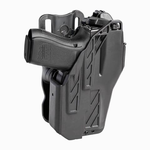 Too many duty holsters sacrifice either speed or security, putting lives at risk. The MFT Guardian Duty Holster eliminates the need for that compromise, without impeding a master grip. This revolutionary design reduces the risks of gun grabs, foreign object and finger ingress, and optic bobble when drawing. The instinctive locking system and automatic optic hood reset offer consistent reholstering, giving officers the confidence they need while on duty. Backed by over 25 years of tactical experience and real-world feedback, it’s built for professionals who demand rapid access and reliable retention for every shift and every draw.