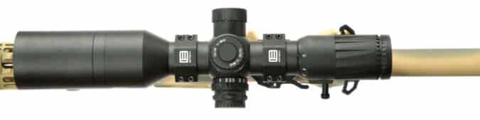 The Vudu 5-25x is a compact, first focal plane scope that quickly gained a reputation for offering a lot of power in a compact footprint. The TR3 reticle offers the same basic “Christmas tree” arrangement of wind dots graduated for distance but with a cleaner sight picture than other Horus designs like the H59. Using a rule of thumb of 2x per hundred yards of target distance, the Vudu 5-25x is plenty of glass to take us to 1,200 yards — well within the capabilities of 6.5 Creed. The scope is seated in EOTech’s factory cantilever mount.