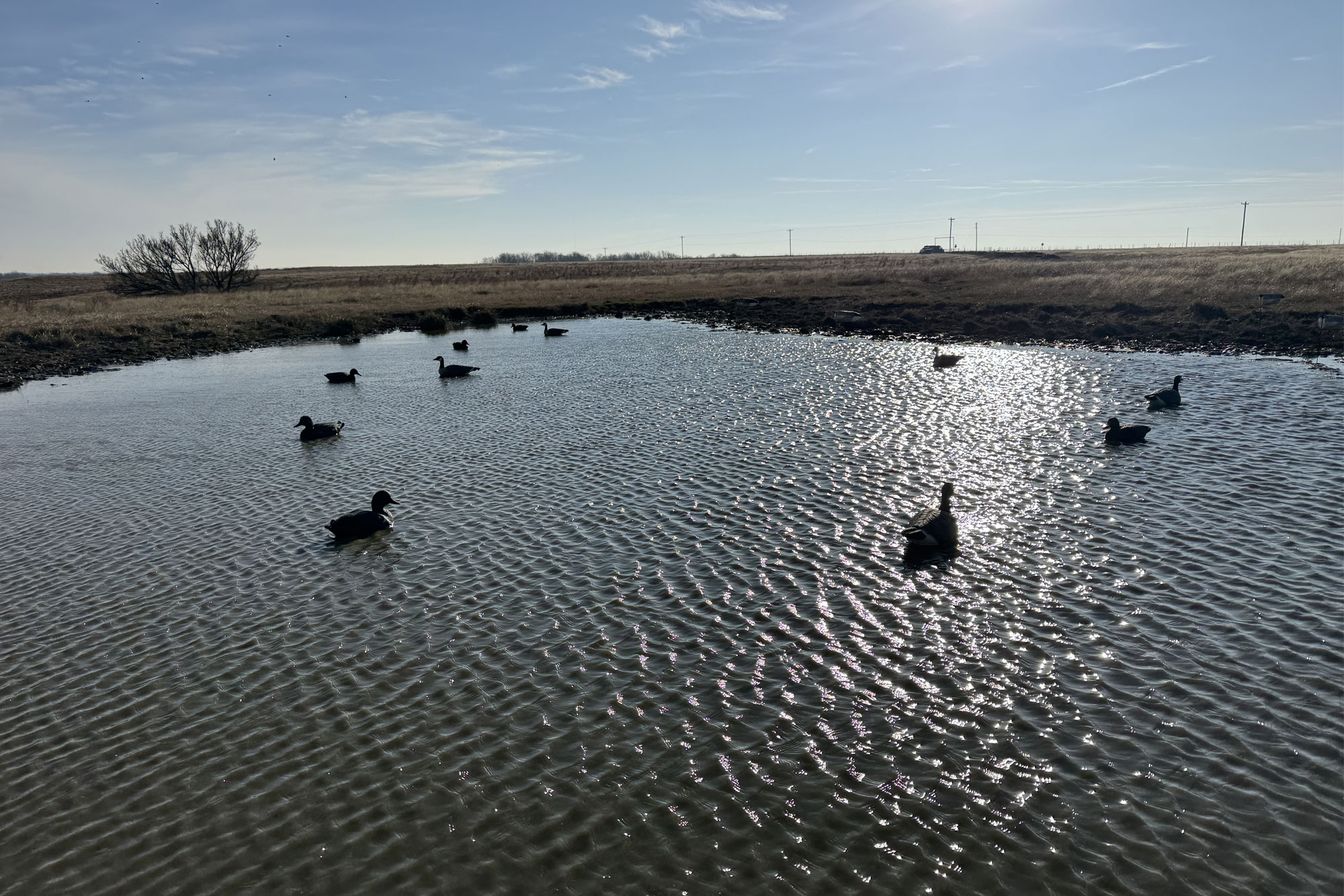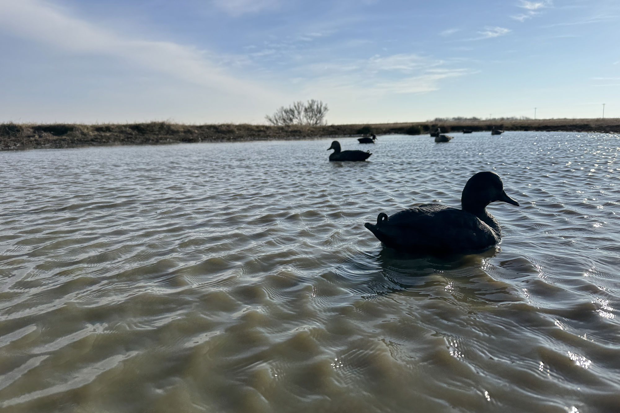 While hunting in a heavily pressured portion of Oklahoma, I added them to my goose and duck spreads for an extra pop on the water. They’ve been the only decoys in my duck spread on sunny and cloudy days.