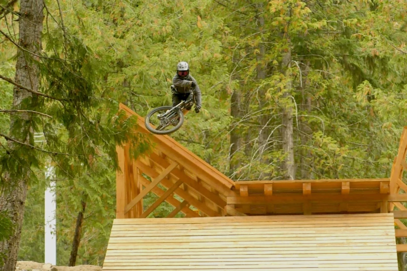 These jump lines have wood features, shark fins, hips, step-ups, step-downs, and tabletops up to 30 feet. I also podiumed with this bike in the closing weekend Whip Off competition.