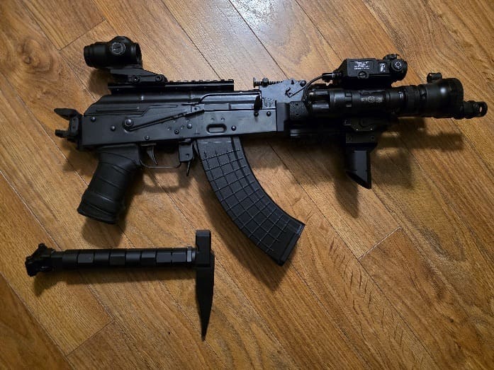 Non-Buffer Tube Weapons Version- For use on Ak-47 or weapons without buffer tubes the Hammer stock/brace has extension sections with both male and female threads so that they can be stacked together to adjust the overall length of the hammer for comfort while shooting & the required length for using the hammer/tool when separated from the weapon.