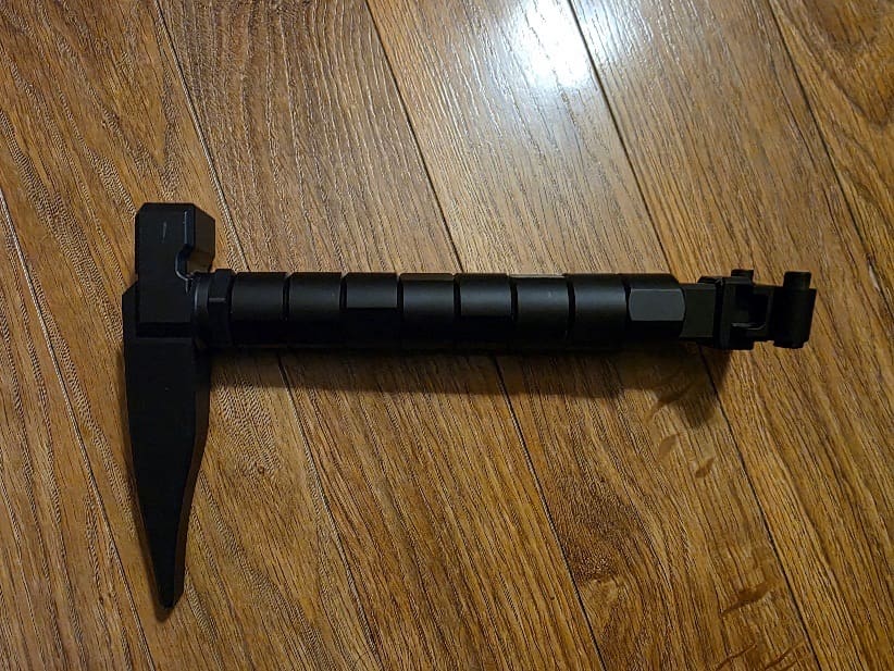 Developed by Lirces 3, the Warbringer is a modular quick detach striking tool system that works with buffer tube style weapons like the AR-15 and those like it and non-buffer tube weapons like AK47’s and other weapons that do not require a buffer tube. The Warbringer takes popular tools like Hammers, Tomahawks, Ice picks and more and converts the striking tool part into a weapons stock or brace that then attaches to 1 inch extension pieces for non-buffer tube weapons or a quick detach hollow buffer tube handle for weapons with buffer tubes.