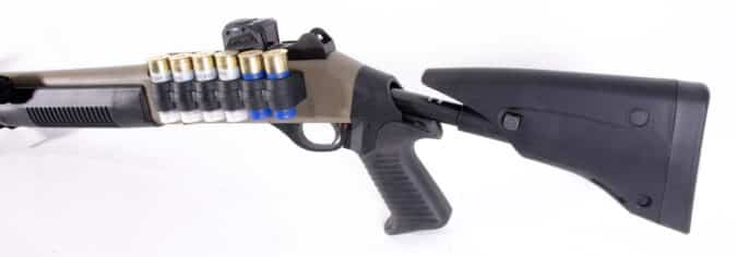 The Benelli’s magazine holds seven rounds of 2 3/4-inch ammo and is a one piece component. As you’d expect from a combat arm, it’s steel but if you want to lighten both the gun and your wallet, aftermarket titanium models exist.